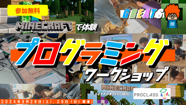 本イベントは、小中高生向けに全国各地でプログラミング教室を展開している「プロクラスキッズ」様のご協力の元、開催致します。