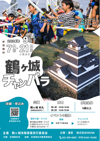 あそび総合カンパニー株式会社IKUSA(本社:東京都豊島区、代表取締役:赤坂大樹)は、2024年9月21日(土)に鶴ヶ城体験事業実行委員会が主催するイベント「チャンバラ合戦 in 鶴ヶ城」を企画運営します。コロナ明け5年ぶりの開催です。