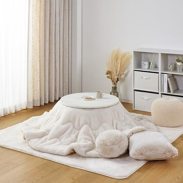 一人暮らしの方やワンルームの部屋にも置きやすいサイズの丸形こたつです。角がないため、