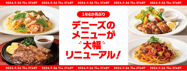 デニーズは、当社のパーパスである「お客様の近くで、ひと皿に生きる活力と楽しさ、そして心の豊かさを提供する」ことを目指しており、直近では、2023年9月より著名なシェフにメニューを監修いただくことで、商品力の向上を図ってきました。その知見と、変化するニーズやお客様からのご意見等を活かし、この度1年6か月ぶりにグランドメニューを改定します。