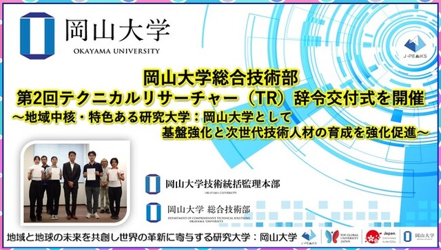 ・【岡山大学】総合技術部テクニカルリサーチャー(TR)の辞令交付式を開催~地域中核・特色ある研究大学:岡山大学の基盤強化と次世代技術人材の実践的育成を開始