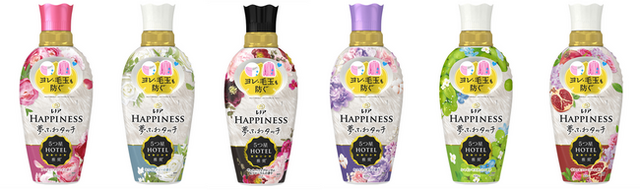 左から:「レノアハピネス夢ふわタッチ アンティークローズ」、「レノアハピネス夢ふわタッチ ホワイトティー」、「レノアハピネス夢ふわタッチ ヴェルベットブロッサム&フローラル」、「レノアハピネス夢ふわタッチ ホワイトムスク」、「レノアハピネス夢ふわタッチ シャインマスカット」、「レノアハピネス夢ふわタッチ ザクロ&フローラル」