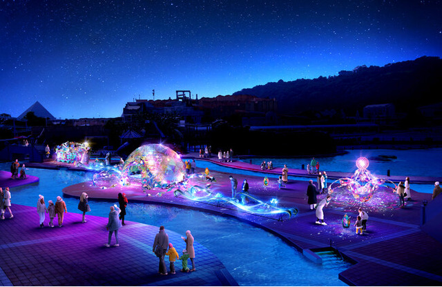 その他にも、寺社の手水舎に季節の花を浮かべて美しく飾る風習の「花手水」をイメージした日本最大級 6mの巨大フローティング花手水がジョイアマーレの浜辺を彩り、海の生き物たちのイラストが通りに映し出されたりと、新たなイルミネーションが登場いたします。