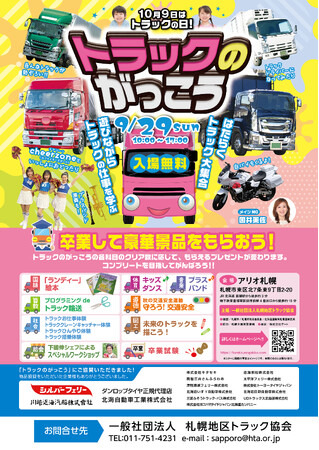 一般社団法人札幌地区トラック協会は子どもたちにトラックの魅力を伝えるため10月9日のトラックの日に関連したイベントとして『トラックのがっこう』を開催します。