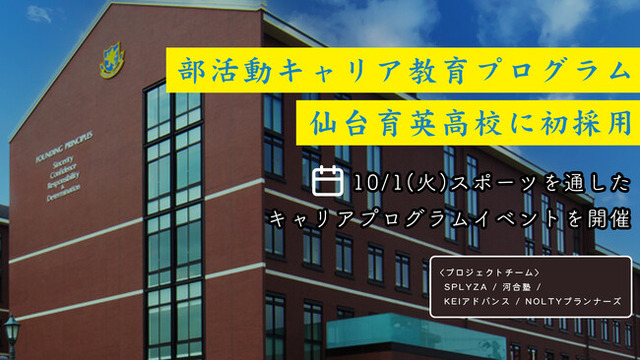 河合塾グループ 株式会社KEIアドバンスと河合塾をはじめとする4社合同のプロジェクトチーム(*1)が5月にリリースした「部活動キャリア教育プログラム」が、仙台育英学園高等学校(以下「仙台育英学園高校」)にて、この度正式採用となりました。スポーツ(部活動)を通して高校生が社会で生き抜く力を身に付け、その力を見える化し、早期からキャリア形成への意識を高めることを目指したプログラムです。