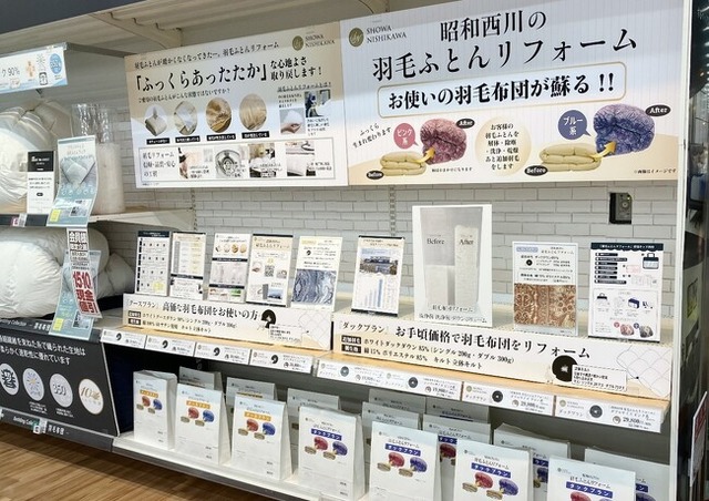 寝具を中心に様々な商品を販売している昭和西川株式会社(所在地:東京都中央区、代表:西川惠)は、株式会社ヤマダホールディングス(本社:群馬県高崎市/代表取締役会長 兼 社長 CEO:山田昇)が運営するヤマダデンキLIFE SELECT店33店舗にて羽毛ふとんリフォームを展開、受付を開始いたしました。両社ともにSDGsをより強く推進していきます。
