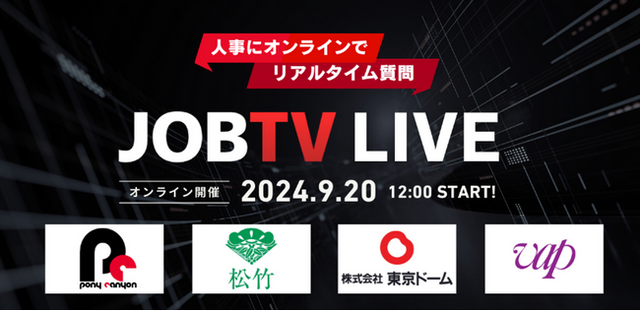 株式会社ベクトル(本社:東京都港区、代表取締役会長兼社長:西江 肇司、東証プライム:6058、以下ベクトル)が運営する動画就活のJOBTV(https://jobtv.jp)は、エンタメ業界の人気企業5社が集う「JOBTV エンタメ業界LIVE」を9月20日(金)に開催します。