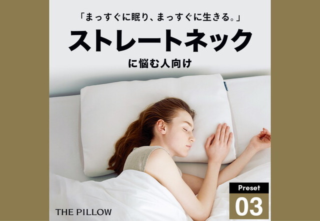オンライン枕診断でAIが70万通りの中から最適な枕を提案する「THE PILLOW Personalize」などを展開する、「枕×AI」の新しい形の枕ブランド「THE PILLOW」(まくら株式会社、所在地:千葉県柏市)は、12万件以上の睡眠統計データをもとに、ストレートネックの人に負担をかけない形状の特徴や傾向から最適な枕素材と容量を導き出し、形状・高さ・硬さにあらかじめ設定したプリセット型枕「THE PILLOW Preset 03 Straight Neck」を、2024年9月13日(金)に発売します。