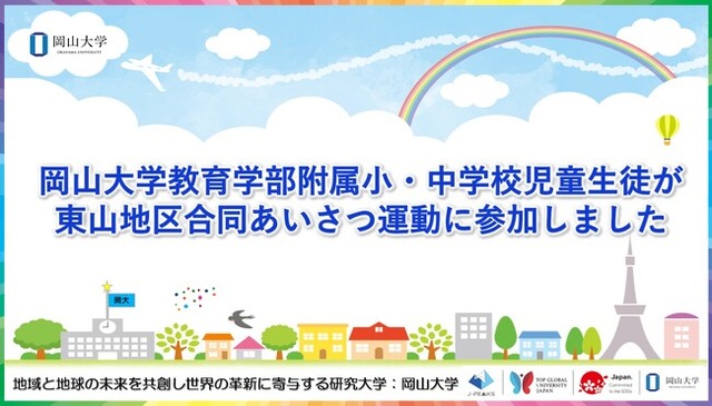 国立大学法人岡山大学(本部:岡山市北区、学長:那須保友)の岡山大学教育学部附属小・中学校の児童生徒が、2024年9月11日の朝8時~8時30分に行われた東山地区合同あいさつ運動に参加しました。
