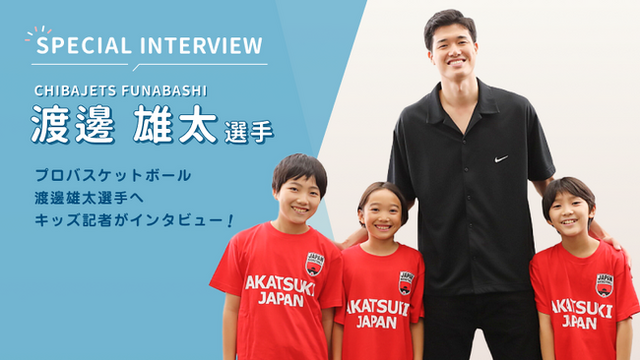 またバスケットボールが大好きなキッズ記者3名が、憧れの渡邊選手にインタビューをしてくれました。今後は子どもたちにバスケットボールを教える活動にも力を入れていきたいと話す渡邊選手、キッズ記者の素直で熱い質問に、優しく答えてくれています。