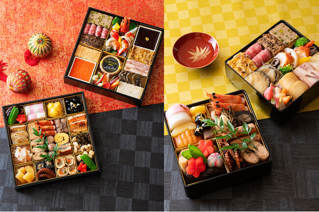 新年を華やかに彩るおせち。縁起物とされる伝統的な正月料理を盛り込んだ日本料理と、オマール海老やたらば蟹、フォワグラ、黒毛和牛など を贅沢に使用した西洋料理をご用意します。