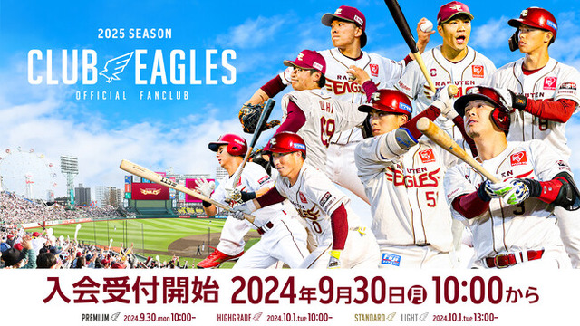株式会社楽天野球団(本社:宮城県仙台市宮城野区、代表取締役社長:森井 誠之)は、9月30日(月)より、2025シーズン楽天イーグルス公式ファンクラブ「CLUB EAGLES」の入会受付を開始することとなりましたので、お知らせいたします。