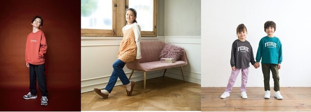 女の子向けはかわいさと着心地を両立するゆったりとしたシルエット、男の子向けはトレンドのドロップショルダー、動きやすさも追求したシルエットです。