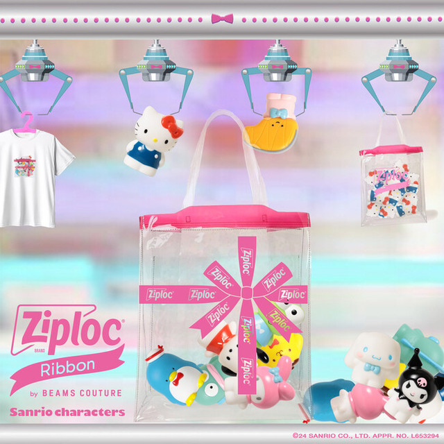 〈BEAMS COUTURE〉がデザイン監修した新商品、『Ziploc(R)Ribbon サンリオキャラクターズの袋詰めLOGO BAG』『Ziploc(R)Ribbon サンリオキャラクターズの袋詰めラッピングBAG』、『Ziploc(R)Ribbon サンリオキャラクターズの袋詰めLOGOTシャツ』、『Ziploc(R)Ribbon サンリオキャラクターズの袋詰めラッピングTシャツ』を2024年9月27日(金)に全国7店舗にて順次発売。