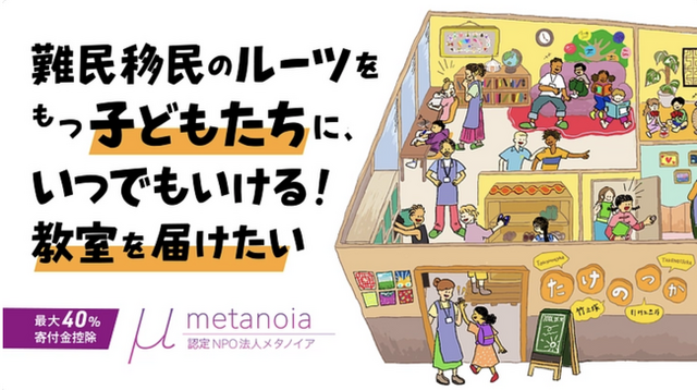 外国にルーツをもつ子どもたちに日本語教育を提供している認定NPO法人メタノイア(所在地:東京都足立区、代表理事:山田拓路、以下:メタノイア)は、2024 年9月20日(金)より、新たな拠点設立に向けたクラウドファンディングを開始しました。新たな拠点は東京都足立区・埼玉県川口市の2つを予定しており、本プロジェクトを通じて、日本社会のなかで言葉の壁や差別に直面している難民・移民のルーツをもつ子どもたちに、学びの場と安心できる居場所を提供することを目指します。
