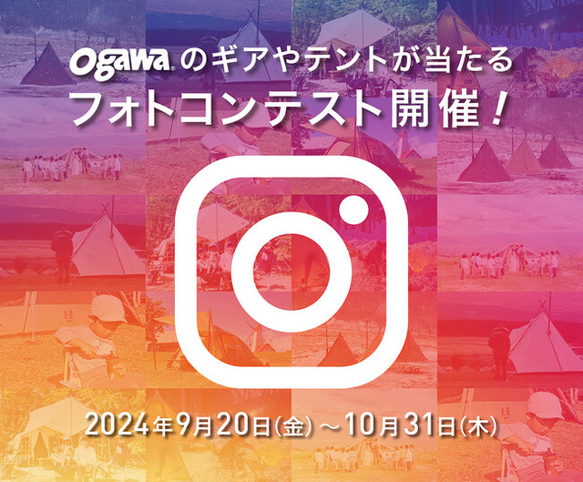 3.[#テントはogawaフォトコン4th] を付け、@ogawa_online_storeをメンションして投稿