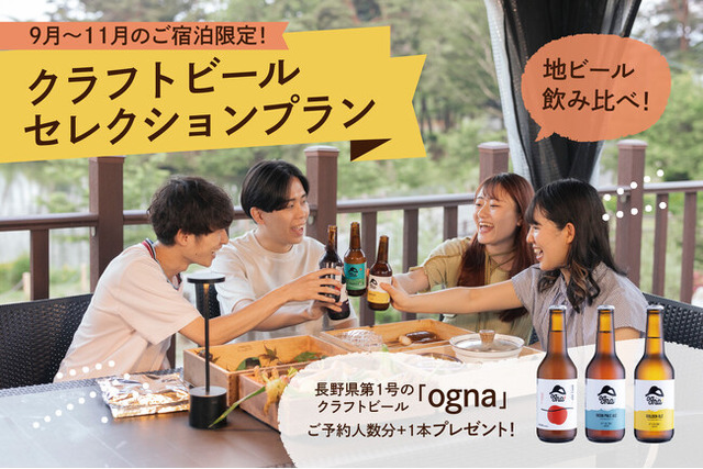 予約時に「クラフトビールセレクションプラン」を選んでいただくと、ご予約人数分+1本をプレゼントします。