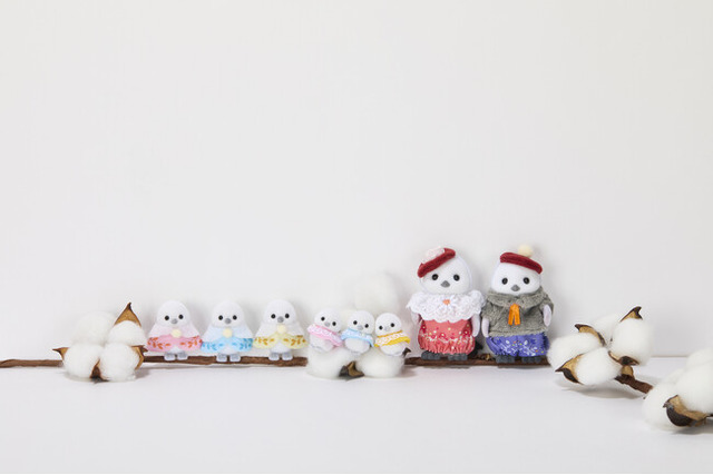 商品内容:シマエナガのお父さん、シマエナガのお母さん、シマエナガの赤ちゃん(ピンク服)、シマエナガの赤ちゃん(イエロー服)、シマエナガの赤ちゃん(ブルー服)