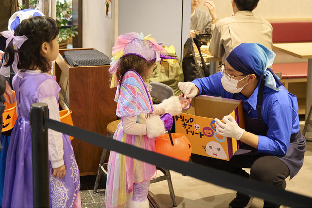 小学生以下のお子さま限定で、東京ソラマチ(R)と東京ミズマチの対象店舗のスタッフに、「トリックオアトリート!」と声をかけると、お菓子やノベルティをプレゼント!!
