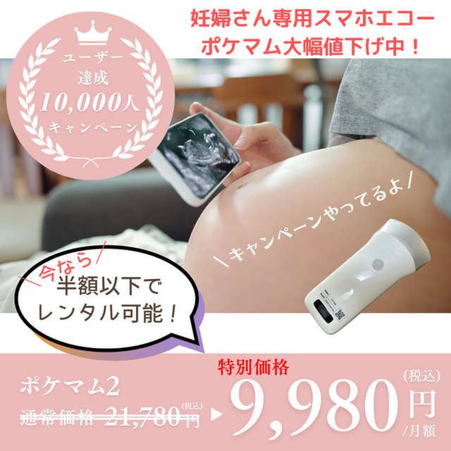 今回のキャンペーンでは「ポケマム1」では 1ヶ月通常レンタル通常価格17,490円を特別価格9,280円(税込)でご提供いたします。一日の利用料金は299円と多くの妊婦さんにとってご利用いただけやすい価格を実現しました。また「ポケマム2」についても1ヶ月のレンタル料金・通常21,780円(税込)が半額以下のキャンペーン特別価格で9,880円(税込)でご利用いただけます。