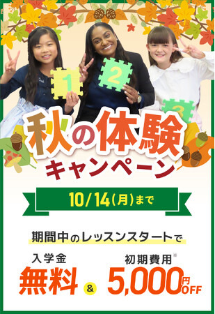 秋のキャンペーン第1弾に引き続き、期間中のご入学とレッスンスタートで、入学金0円&初期費用割引になるお得なキャンペーンです。