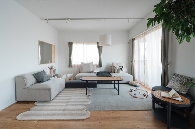 インテリアは「on the Couch」をコンセプトに「ACTUS(アクタス)」がスタイリング。小さなお子様のいる共働き家族を想定し、家族が集い、楽しく穏やかに過ごせる柔らかな空間を目指しスタイリングを施しました。