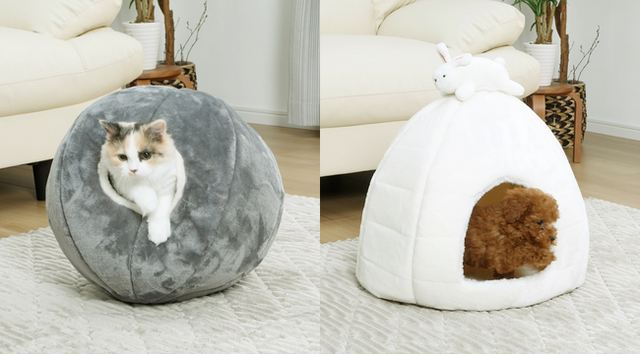 コメリのペットベッドに、秋冬の新作が登場しました。どの商品もふんわり生地で温かく、涼しくなってきたこれからの季節にぴったりです。中でも、「ポッドベッド 抗菌防臭 グレー」は、洞窟のような小さな入口が特徴で、もぐって遊ぶことが好きなわんちゃん・ねこちゃんに最適です。丸みのあるデザインが身体にフィットして快適な眠りを誘います。また、「ドームベッド ウサギ 抗菌発熱」は、屋根にうさぎのマスコットが付いたかわいいペットドームです。蓄熱メッシュ生地でマットが発熱するため、冬の冷たい床からわんちゃん・ねこちゃんを守ります。他にも、インテリアになじむベーシックなデザインのペットベッドを多数ご用意しております。