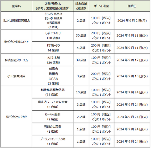 * 記載の店舗/施設数は、発表日現在の店舗/施設数となります。