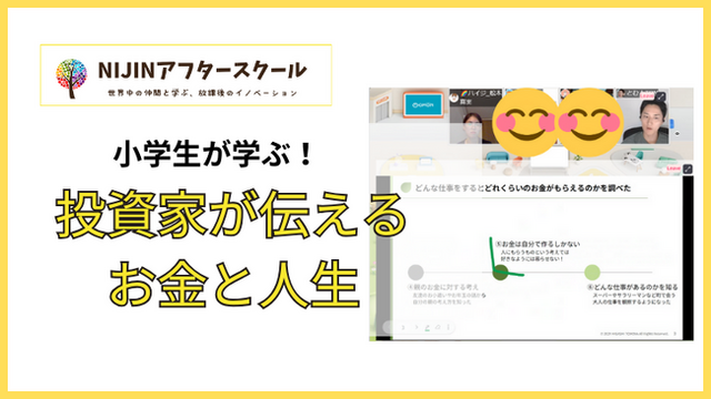 株式会社NIJIN(本社:東京都江東区、代表取締役:星野達郎)が運営する小中学生を対象としたメタバース学童『NIJINアフタースクール』は、9/26(水)プロの投資家から学ぶ投資講座を開催しました。