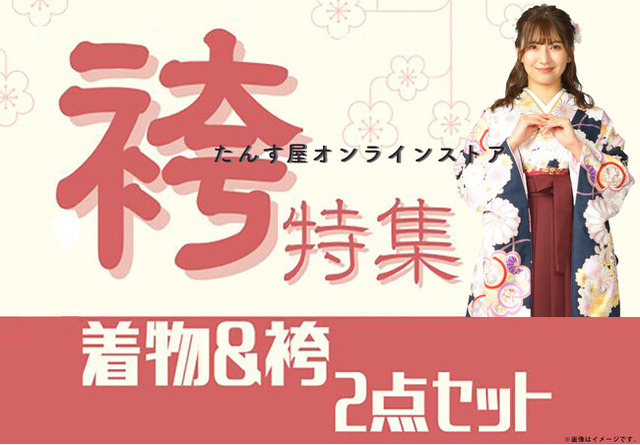 この度、リユース着物「たんす屋オンラインストア」では、卒業式にふさわしい、華やかな袴と着物をセットした「袴特集」をスタート。定番の古典柄から、トレンドを取り入れたモダンなデザインまで、様々な袴と着物のセットを数量限定でご用意しました。