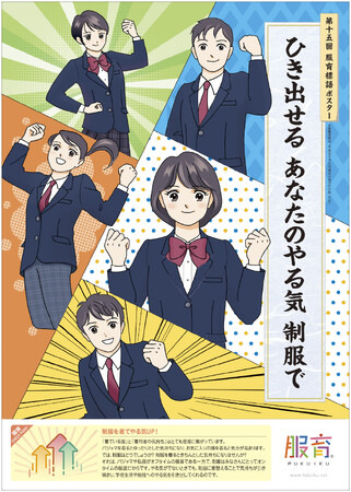 衣服を通して豊かなこころを育む「服育(R)」を提唱する株式会社チクマ(本社:大阪市中央区、代表取締役社長:堀松 渉)では、2010年より「スクールユニフォーム」をテーマに服育標語を募集しています。第15回目となる今年は、最優秀賞「ひき出せる あなたのやる気 制服で」(川西市立東谷中学校 一年生 辻菜奈子さん)を標語ポスターにしました。