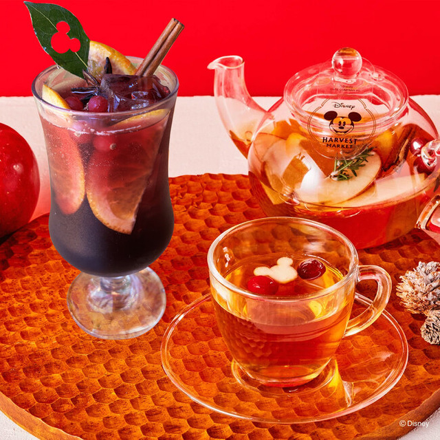 フルーツがキラキラ。ミッキーマウスをイメージした限定ドリンク。クリスマス限定ドリンクは、「Holidayスパイシーグレープジュース(仮)」「Holidayフルーツティー(仮)」の2種を予定。どちらもミッキーマウスのデザインが隠れていて、ほっこりした気持ちで楽しめるドリンクです。フルーツたっぷりなのも嬉しい。アフタヌーンティーに+550円でセットにすることもできます。