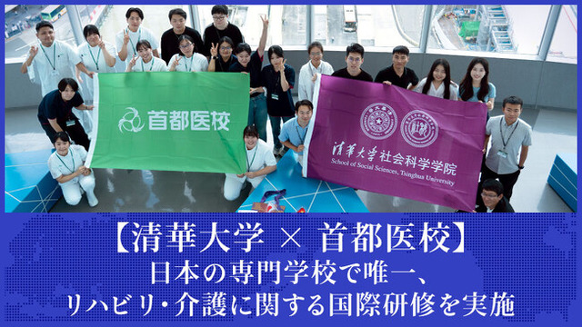 医療・福祉の資格と就職を保証する専門学校首都医校では、世界大学ランキングでアジアトップの清華大学の学生との国際研修プログラムを実施しました。本プログラムには、清華大学社会科学大学院の学生7名が参加し、各自の研究テーマに関連する「日本のリハビリ・介護」について学びました。