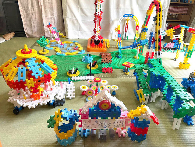 ニューブロックで遊園地を見事に再現し、乗り物や園内の細部まで工夫されていて、ワクワク感が伝わります!