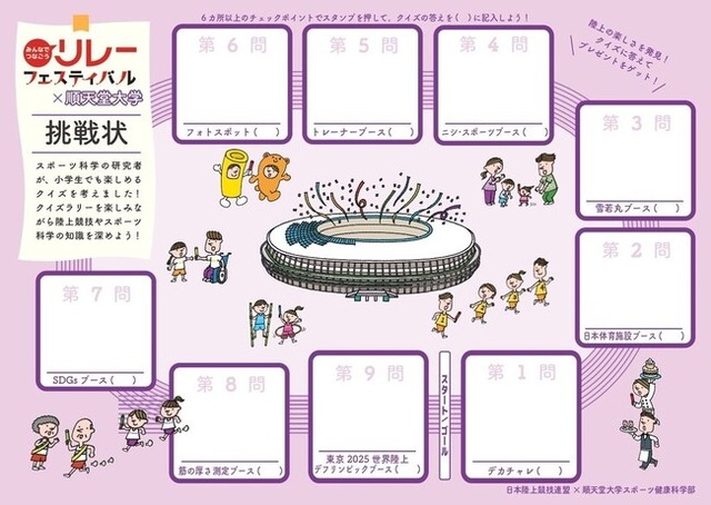 順天堂大学の各研究室から出題される「陸上競技を楽しむ上で知っておきたい豆知識クイズ」を、会場内にある9つのポイントに設置。