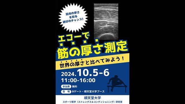 10月5日(土)~6日(日)に国立競技場で開催いたします「みんなでつなごうリレーフェスティバル2024」にて、順天堂大学スポーツ医学研究室が、エコーによる筋の厚さ測定を体験できるブースを出展します!
