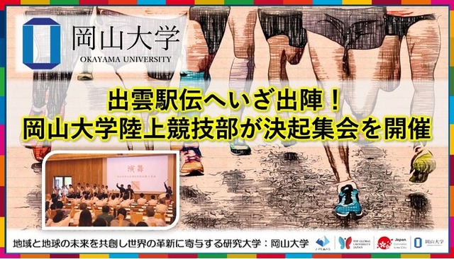 国立大学法人岡山大学(本部:岡山市北区、学長:那須保友)は、2024年9月15日に本学津島キャンパスの岡山大学共育共創コモンズ(OUX)で、本学陸上競技部が「第36回出雲全日本大学選抜駅伝競走 学内決起集会」を開催しました。