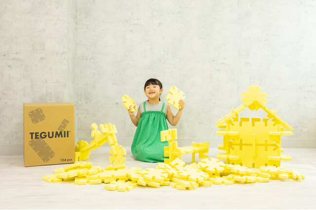 巨大ブロックなのに収納はコンパクト!だからおうちでも遊べちゃうビッグテグミー!6種類の平面パーツからの立体造形は子どもから大人まで夢中になる。災害時には避難所等で椅子や棚といった「足りないもの」の代わりになりながら、「遊びの不足」も解消する!どんなときでも遊べて、使えるフェーズフリーなおもちゃ。
