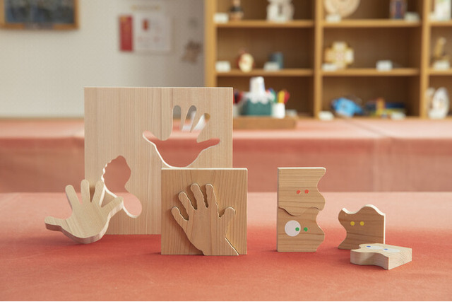 東京おもちゃ美術館の館内に糸ノコ専用の制作小屋「いとのこや」が設置されたのは2018年。最新式のスイス製電動糸ノコを4台導入しました。スタッフが作り方のコツを丁寧にお伝えするので初心者の方も安心です。正方形のヒノキの板に子どもの手形などの図案を記し、糸ノコでカットしていくと、制作時間20分ほどで木の香り漂う本格的な作品が完成します。
