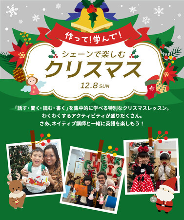 株式会社増進会ホールディングス(Z会グループ)のグループ会社、株式会社シェーンコーポレーション(本社:東京都新宿区 代表取締役社長:石谷雄也)が運営する英会話スクール「シェーン英会話」は、年少~小学6年生対象の1日完結型レッスン「作って!学んで!シェーンで楽しむクリスマス」を2024年12月8日(日)に開催します。レッスンはいずれも4名の少人数定員制。クリスマスをテーマに年齢に合わせたさまざまなアクティビティを通して、「話す・聞く・読む・書く」を集中的に楽しく学ぶレッスンです。11月25日(月)までお申し込みを受け付けています。