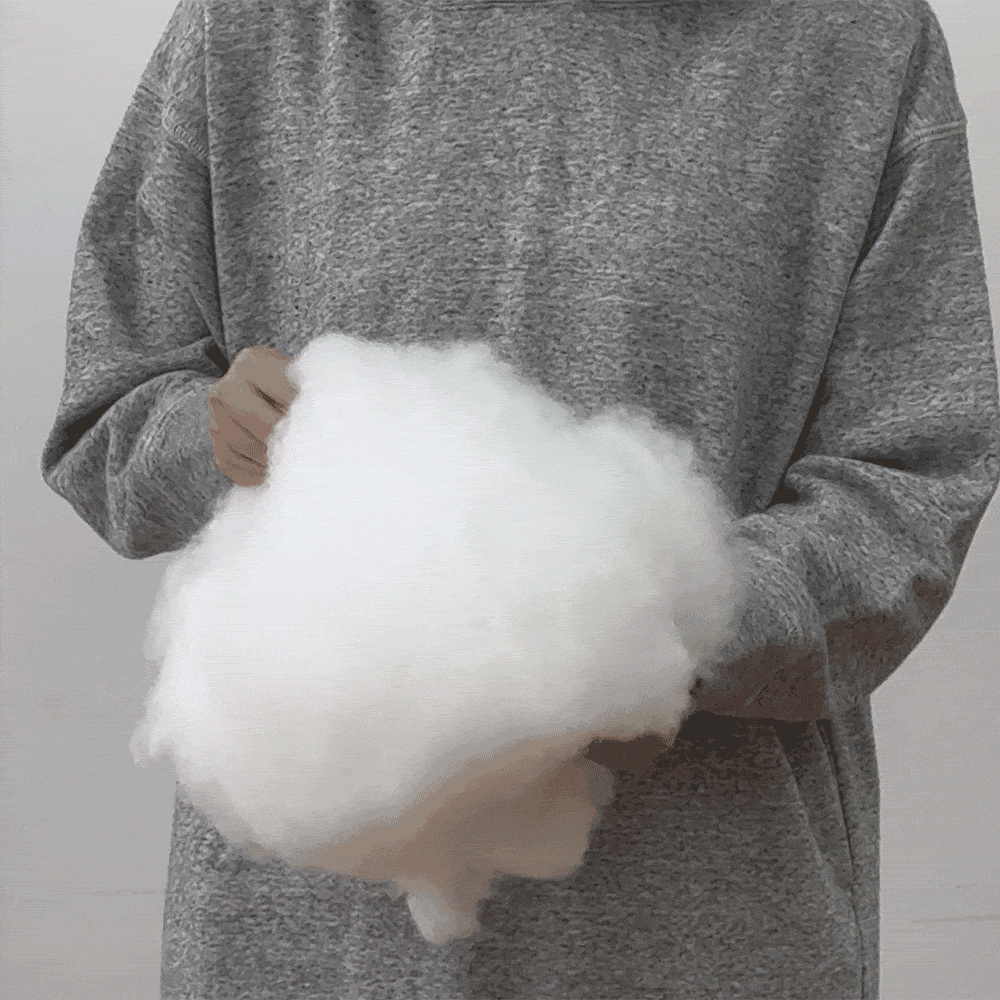 「エンドレスパフファイバー」とは従来の雲ケットの中わたの繊維を約3倍長くした新素材です。もっちり感が増し保温性能もアップ。さらに繊維が長くなったことで中わたの擦り切れが軽減され、ホコリがでにくい仕様になりました。