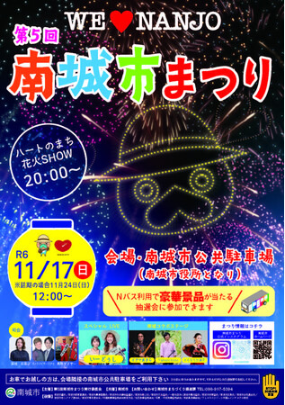 地域の魅力再発見や地域産業の振興を目的に「第5回南城市まつり」を11月17日(日)に南城市公共駐車場(南城市役所となり)で開催いたします。