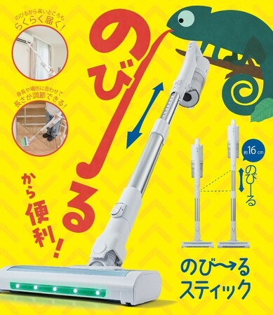 アクア株式会社(本社:東京都中央区、代表取締役社長 兼 CEO:杜 鏡国)は、ユーザーの身長や掃除する場所に合わせてスティックの長さが調節できるコードレススティッククリーナーの従来モデルに、新たに5つのグリーンLEDライトを搭載し、軽量化した「のび~るスティック」(品番:AQC-PX2R)を2024年10月16日(水)に発売いたします。