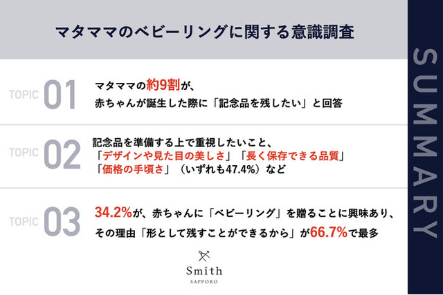 ・03|34.2%が、赤ちゃんに「ベビーリング」を贈ることに興味あり、その理由「形として残すことができるから」が66.7%で最多