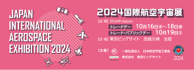 一般社団法人日本航空宇宙工業会(会長 中村 知美 株式会社SUBARU 取締役会長)および株式会社東京ビッグサイト(代表取締役社長 前田 信弘)は、国内最大の航空宇宙産業の総合展示会である「2024国際航空宇宙展」(JAPAN INTERNATIONAL AEROSPACE EXHIBITION 2024/略称JA2024)を2024年10月16日(水)~19日(土)の 4日間、東京ビッグサイト(東京都江東区有明3-11-1)にて開催します。