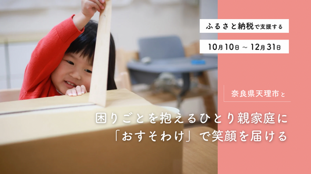 「困りごとを抱えるひとり親家庭に『おすそわけ』で笑顔を届ける」というプロジェクト名のもと、5,000,000円を目標に2024年10月10日(木)から12月31日(火)までご寄付を募集しています。