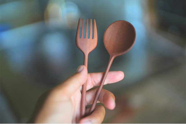 細長い柄に、スプーンはたんぽぽの綿毛、フォークはたんぽぽの花をイメージした形状です。スプーンは韓国生まれの「スッカラ」の丸さ・多用途性と、天然木の温かみの”いいとこどり”をしました。フォークは、先を長めに設計したことで、木製のカトラリーでも食事に使いやすいよう設計しました。
