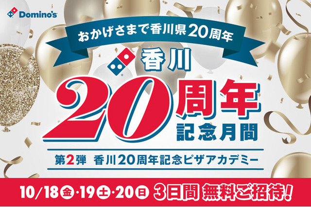 ドミノ・ピザは、20年前の2004年10月12日に、香川県高松市内に1号店である「高松栗林店(現「高松松縄町店」)」をオープンさせ、現在は県内に6店舗を展開し、お客様にご利用いただいております。この度、2024年10月12日(土)~11月11日(月)までの1か月間開催する「香川20周年記念月間」の第2弾として、「香川20周年記念ピザアカデミー」を開催します。