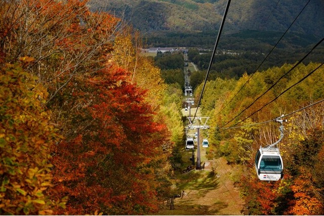 ■移り行く紅葉を眺める全長 2,400 mのゴンドラの旅