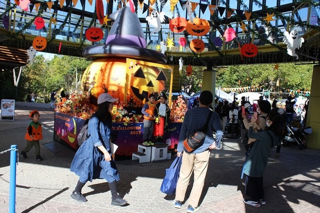 現在、秋の楽園祭メインイベントである「キッズハロウィンパラダイス」を10月4日(土)より開催中で、園内にはフォトスポットにピッタリな高さ5mのジャックオーランタンをはじめ、楽しいハロウィン装飾やフォトスポットを展示中です。(11月4日(月・振休)まで開催)
